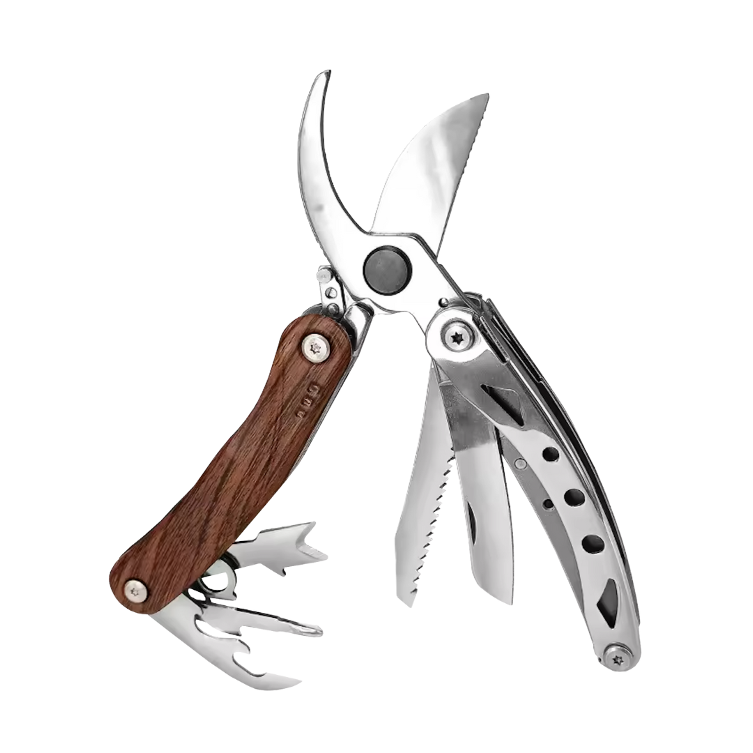 The 8-in-1 Pruner is a powerhouse garden tool combining cutting, trimming, sawing, and wire-cutting functions in one compact design. Crafted from high-quality stainless steel, it features non-slip ergonomic handles for superior grip and control. Integrated tools include a knife, screwdriver, and bottle opener, making it perfect for on-the-go gardening. Built for versatility and durability, it’s the only pruner you’ll ever need.