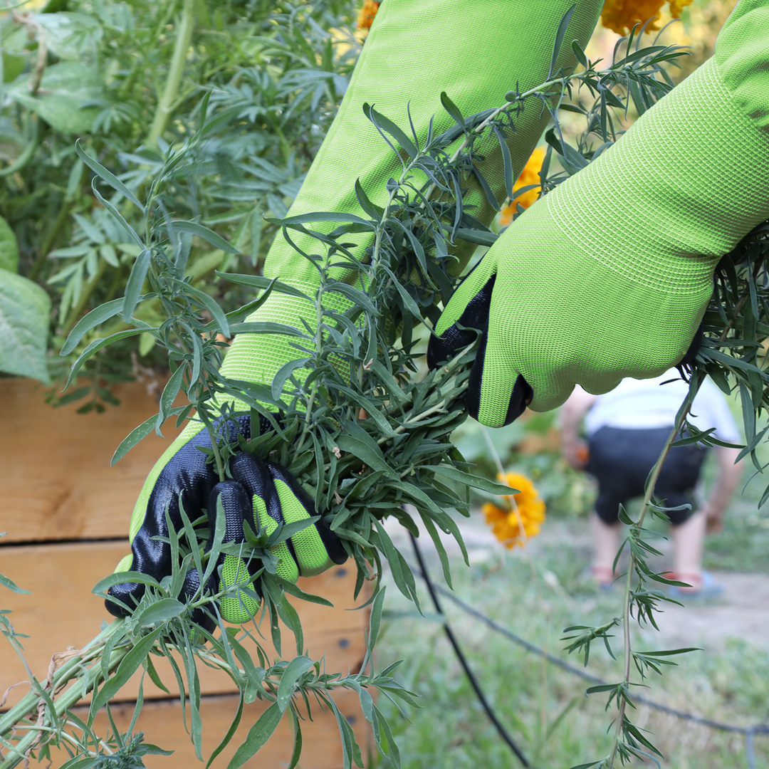 Full arm-length gardening gloves to keep you protected. The extended sleeves and no-slip grip makes working in the garden more manageable, without worry of thorns.