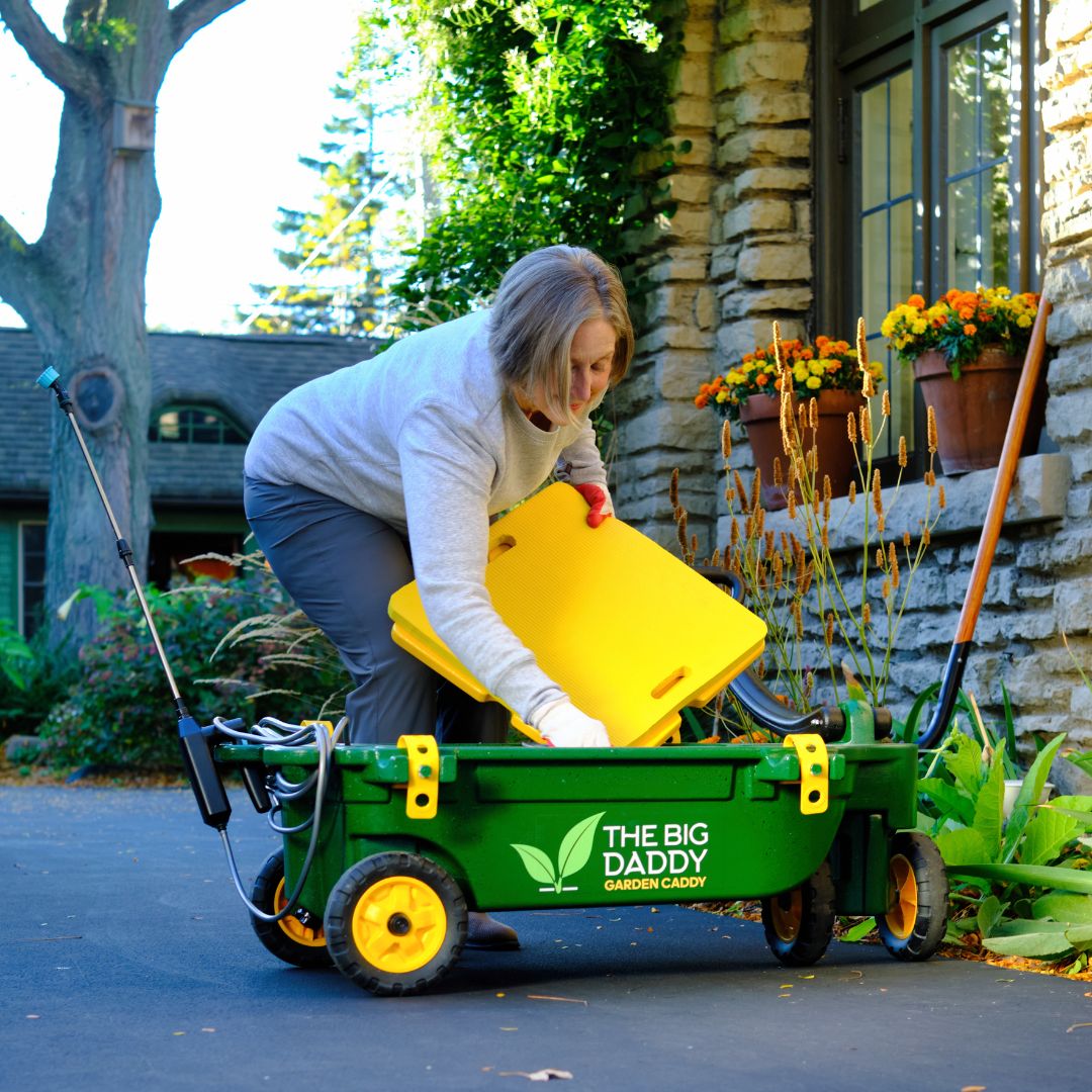 Our revolutionary garden cart helps you get more done with less strain on your body. Effortlessly haul up to 300 lbs, store 12 gallons of water, and carry tools with this versatile, multi-use yard cart. Now, you can focus on the true joy of gardening.